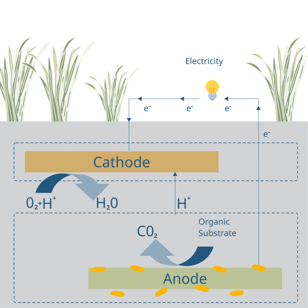 An electro-wetland is a natural system for treating wastewater that produces electricity through the oxidation of organic matter. It is built upon a standard Horizontal Subsurface Flow Constructed Wetland (HSSF CW) with the addition of electrodes. (Cathodes and Anodes).