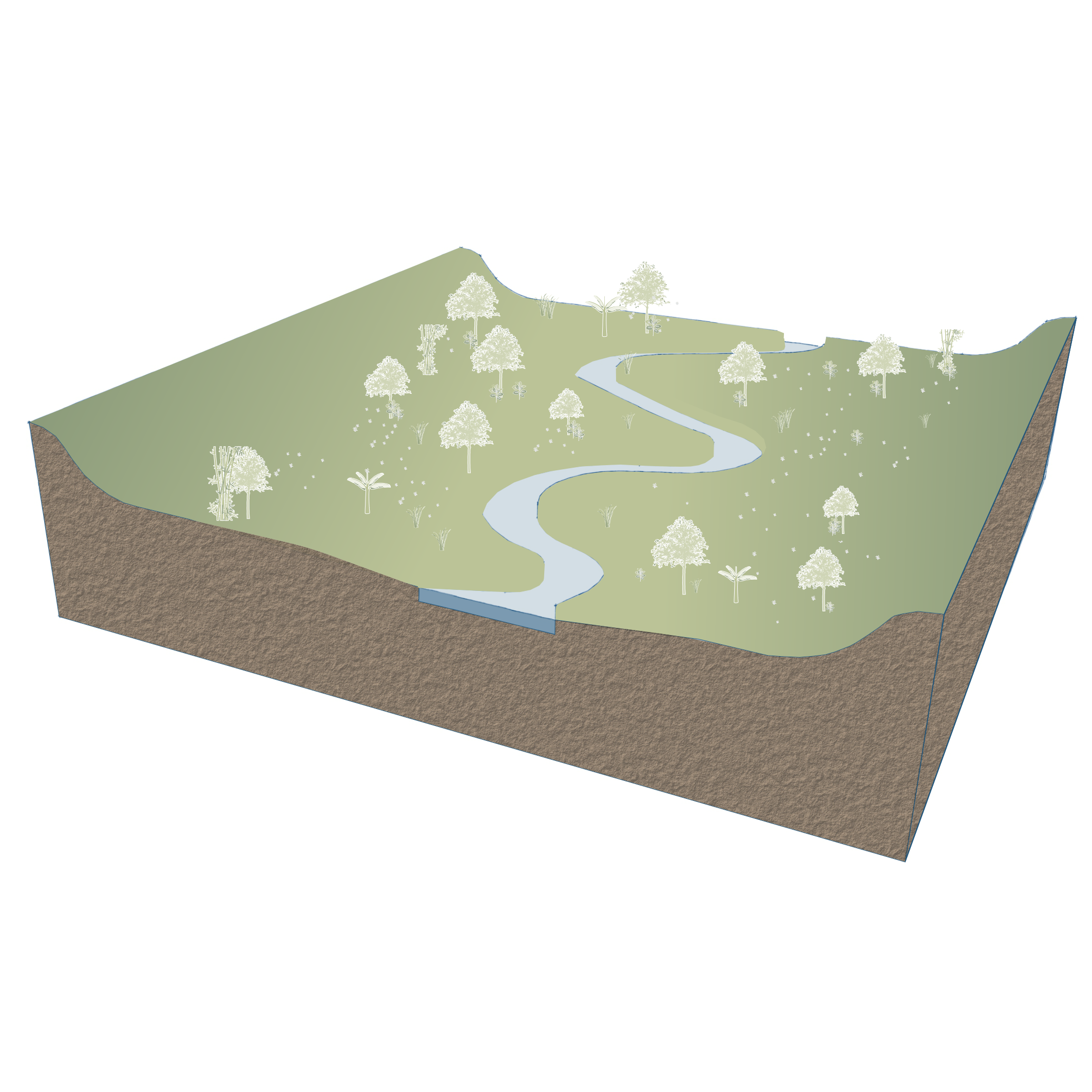 Expansion of the river floodplain area to temporarily increase the water storage capacity and increase infiltration to reduce the risk of river flooding. The expansion process could be through dechannelize the river in order to increase the floodplain which are the area on both sides of the river.