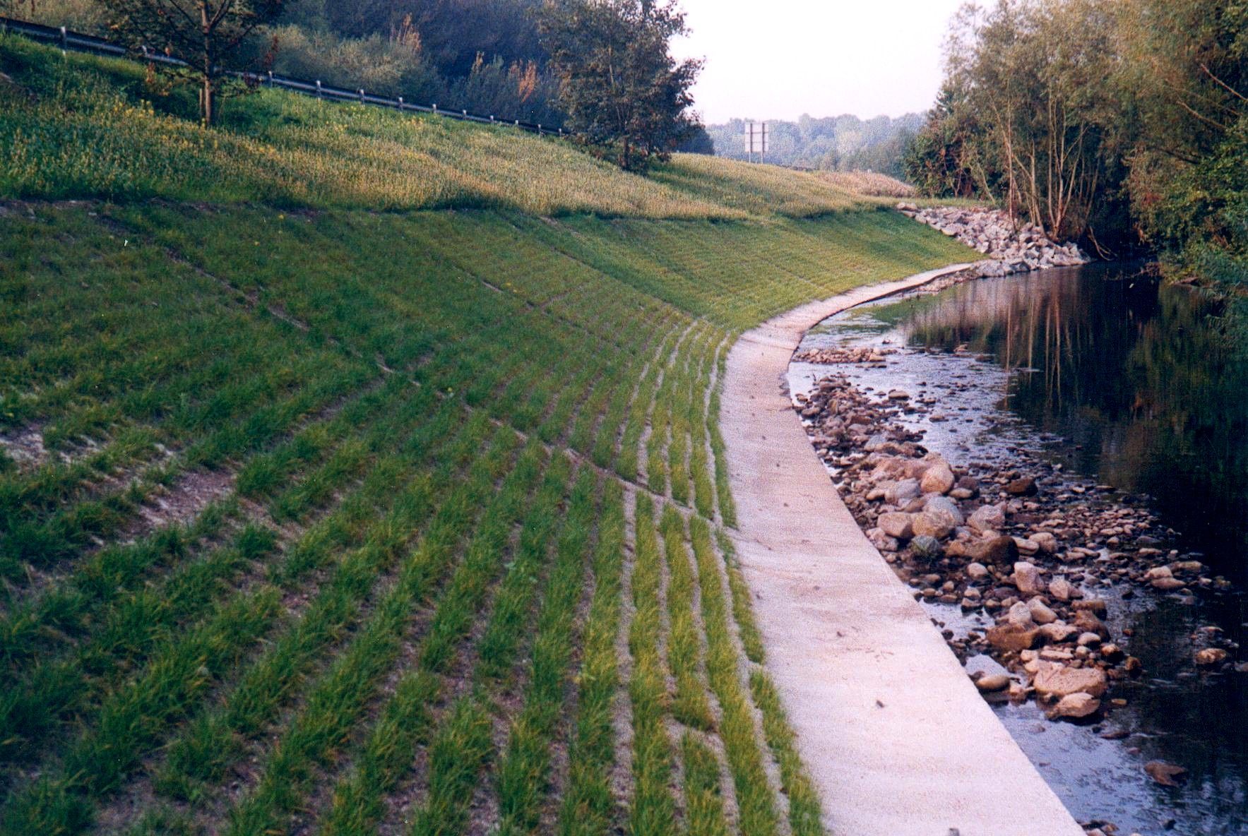 Saluran air permukaan terbuka yang dangkal mengumpulkan air, memperlambat kecepatan dan menyediakan tempat penampungan untuk endapan lumpur dari limpasan. Dapat dimasukkan ke dalam bagian atas rantai SbA. Penghijauan saluran meningkatkan kenyamanan dan keanekaragaman hayati.